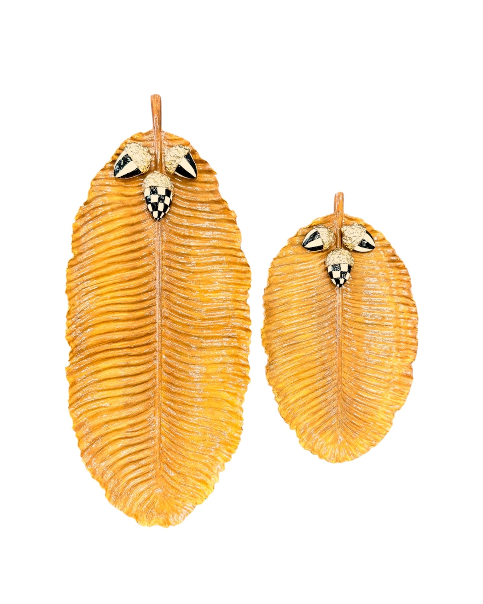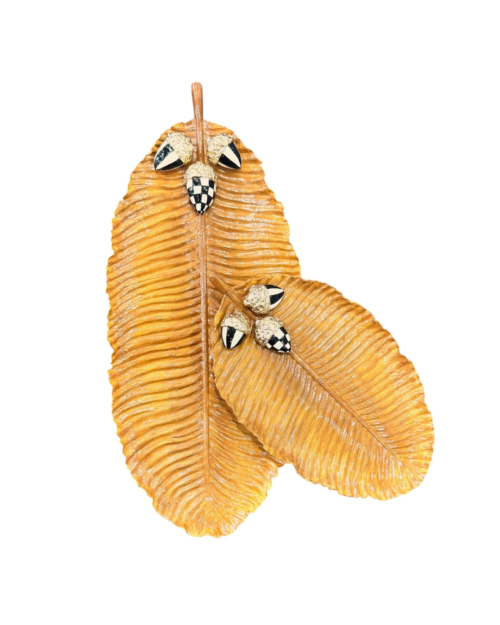 Her bir tabağın ucunda yer alan şık detaylarıyla süslenmiş palamut figürleri, ürünün el işçiliğini ve özgünlüğünü ön plana çıkarıyor. Bu set, sadece bir servis tabağı olarak değil, aynı zamanda takı, anahtar ya da diğer küçük eşyalarınızı düzenlemek için de kullanılabilir. Misafirlerinizi etkilemek veya ev dekorasyonunuza mevsimlik bir hava katmak için mükemmel bir seçimdir.
